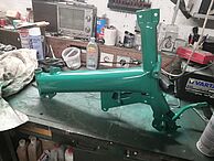 Das Mofa gab es original in drei Farben. Rot, Orange und Grün. Mein Enkel hat sich für Grün entschieden. Eigentlich wollte ich den Rahmen Pulver beschichten lassen. Aber um das Ganze zu beschleunigen aber auch um ihm die ganze Materie näher zu bringen, machen wir es nun auf die altmodische Art.
