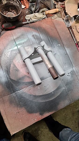 So geht es nun wieder voran und das sehr eifrig. Die Gabel war damals schon geschliffen und wurde nochmal nachgeschliffen, grundiert und lackiert.
