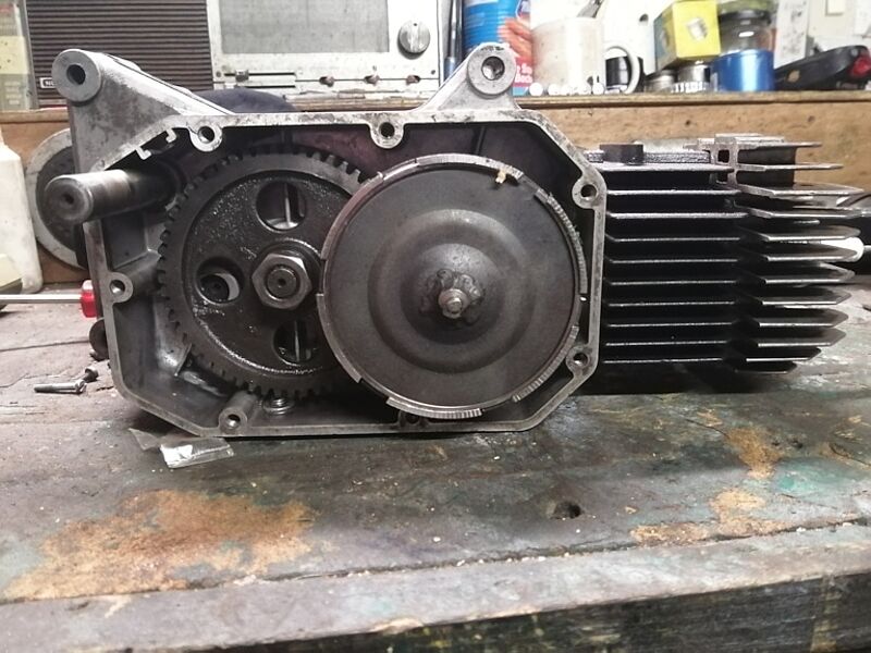 So nach und nach, fange ich nun an Demm 3 aufzubauen. Der Motor machte nach der ersten Begutachtung einen guten Eindruck. Der war schon teilzerlegt und ich konnte alles in Augenschein nehmen. Die zerlegte Kupplung zeigte ein gebrochenens Gegenstück zur Kupplungsscheibe, dieses wurde duch ein Gebrauchtteil ersetzt. Leider musste ich die alte Kupplungsscheibe erst mal wieder einbauen, da ich meinen NOS Scheibe, die ich letztens bei Kleinanzeigen erstanden habe, nicht finde. Aus meinem Fundus nahm ich den besten Zylinder, der entrostet und mit Thermolack schwarz lackiert wurde. Nachdem ich den Zylinder gehohnt hatte, wurde er mit einem neuen NOS Kolben am Motor plaziert. Noch den Zylinderkopf drauf und fertig.